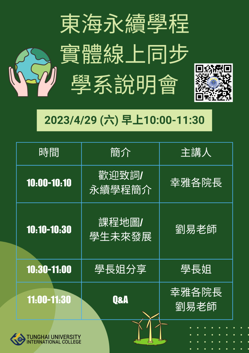 東海永續學程 實體線上同步 學系說明會